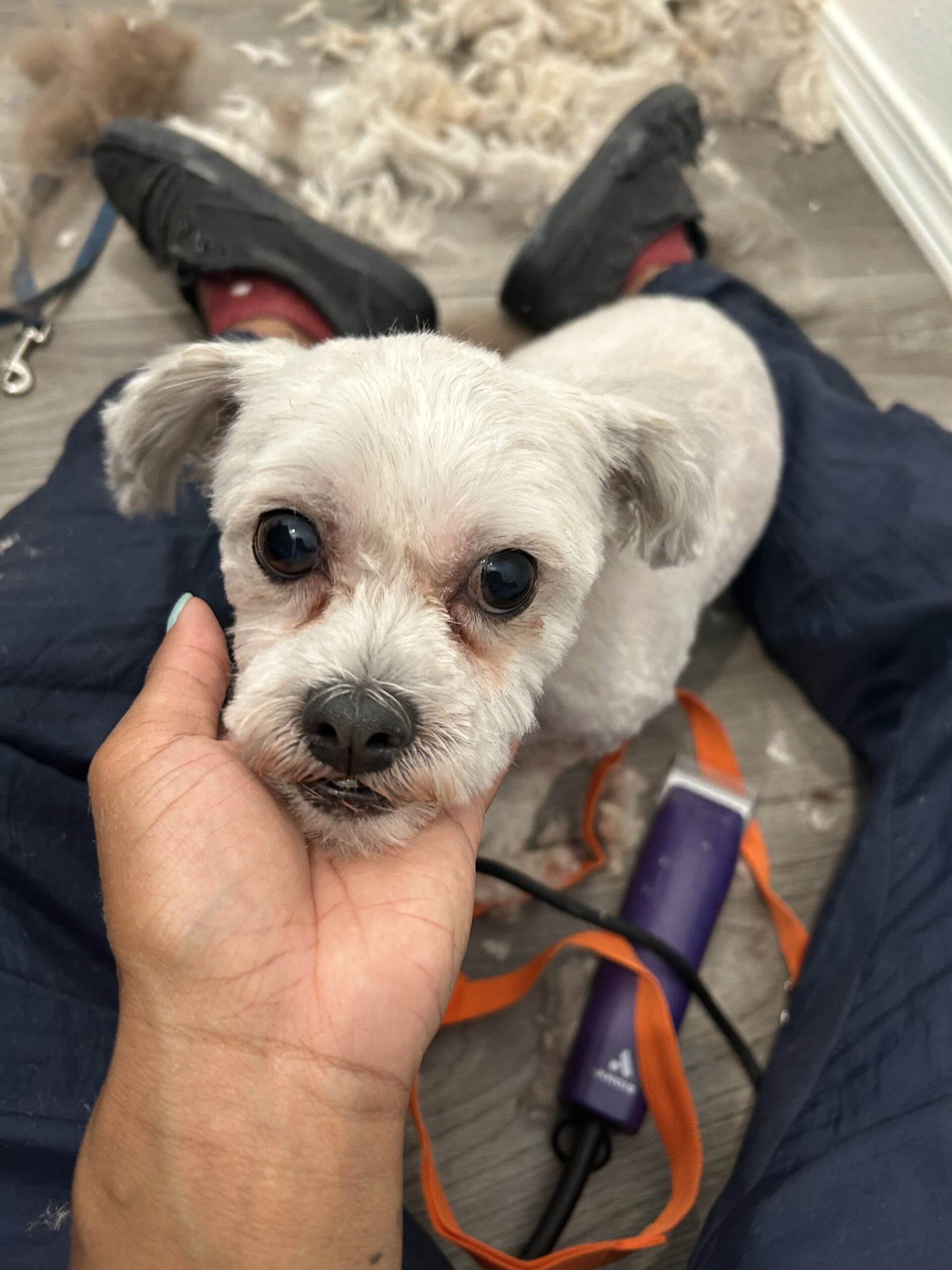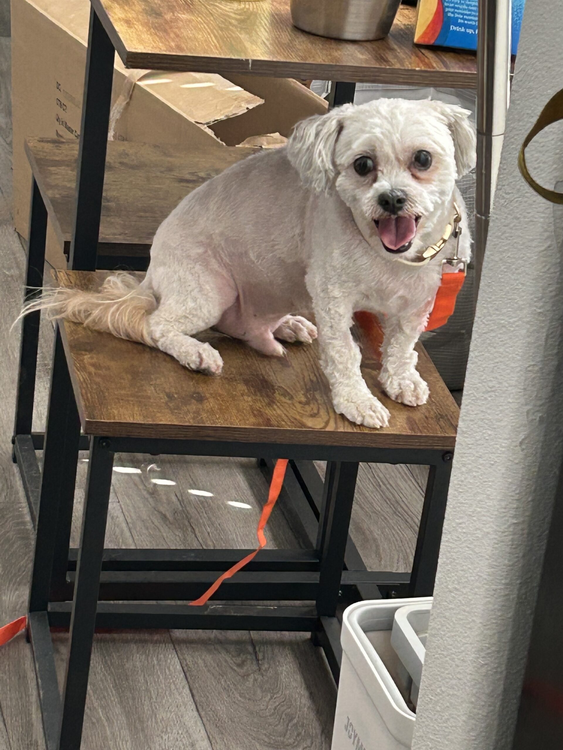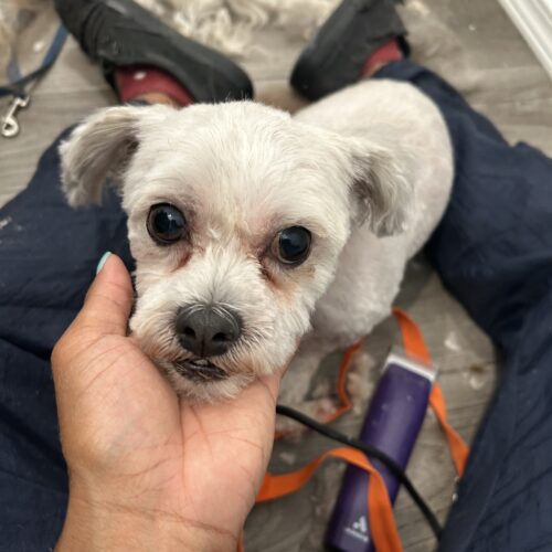 Poof is a white Maltipoo male who needs a special home that is on the quieter side as he scares easily. He is approximately 4 years old. He needs a patient person who is able to work through his fears and anti-social anxiety. He is working on becoming a good canine citizen and integrating back into a social home setting.